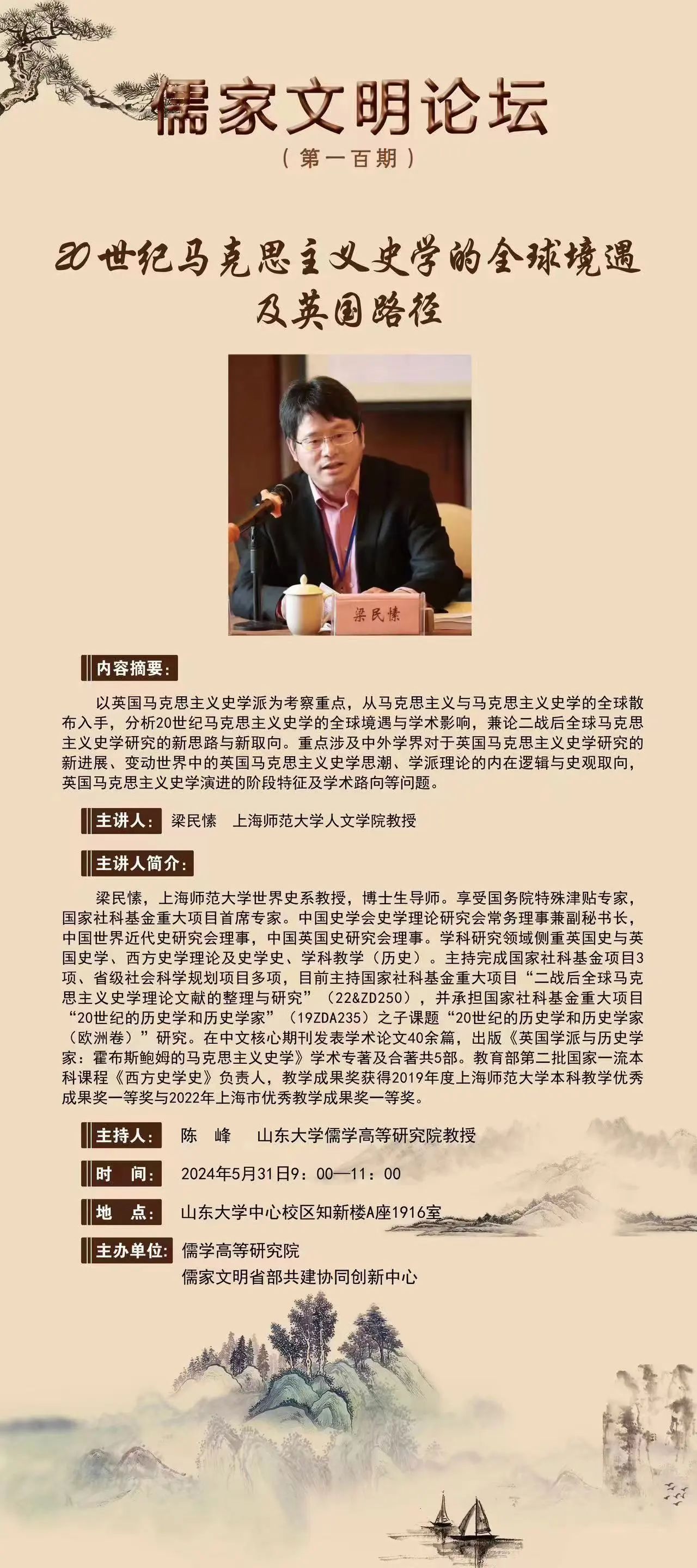 讲座预告 | 儒家文明论坛第一百期:20世纪马克思主义史学的全球境遇及英国路径