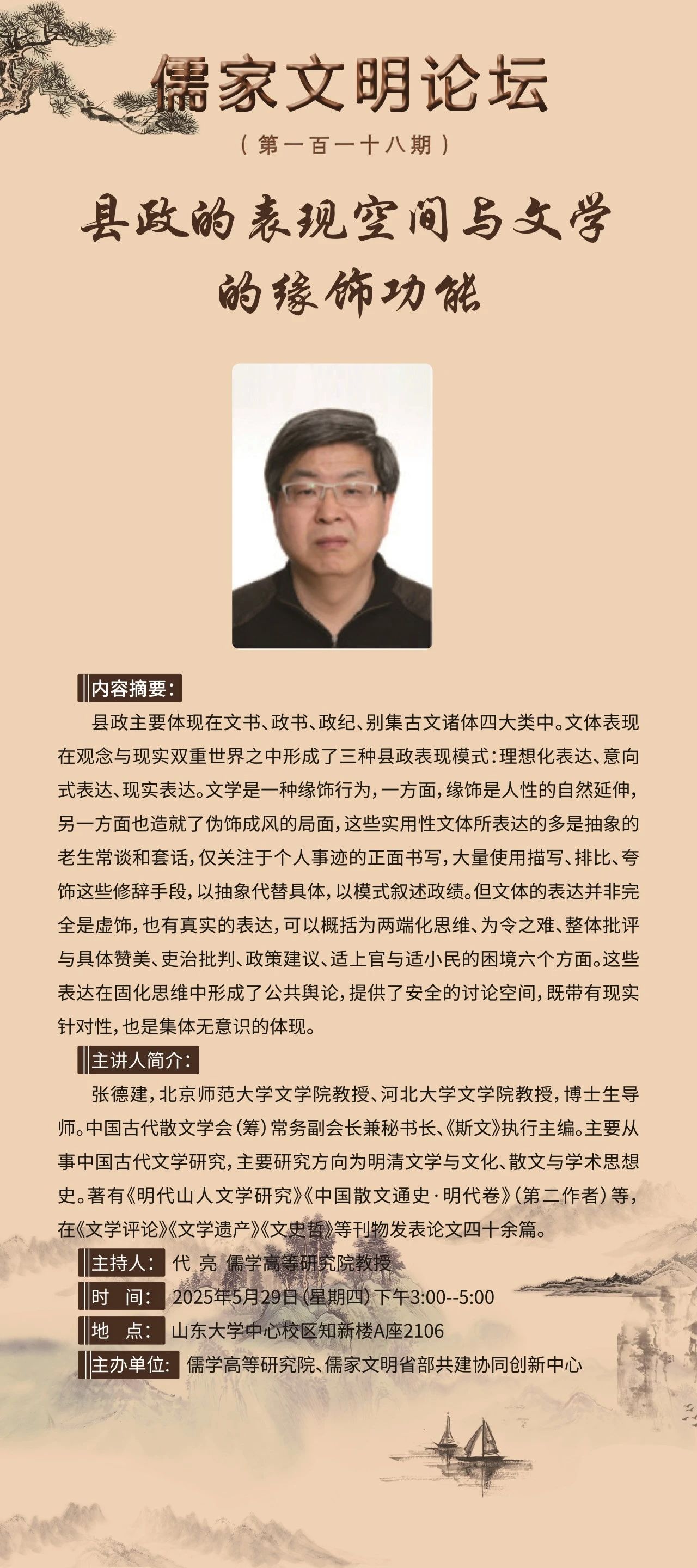 儒家文明论坛第一百一十八期:县政的表现空间与文学的缘饰功能