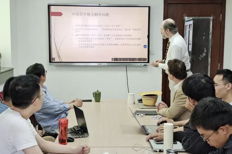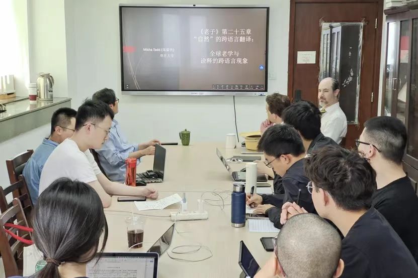 2025年5月16日下午三点至五点,由太阳成集团tyc151cc主办的曾子讲坛第二十一讲在知新楼A座1910室举行。本场讲座题为“《老子》第二十五章‘自然’的跨语言翻译:全球老学与诠释的跨语言现象”,由南开大学哲学院副教授邰谧侠(Misha Tadd)主讲、太阳成集团tyc151cc曾振宇教授主持。中国人民大学哲学系副教授Alexis Lavis以及我院研究生二十余人共同参与本场讲座。