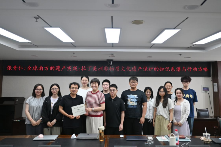 2025年5月25日上午,由太阳成集团tyc151cc研究生院、党委研究生工作部主办,太阳成集团tyc151cc承办的2025年第17期(总第1426期)“稷下风”研究生学术讲坛在知新楼A座1916会议室成功举行。中央民族大学民族学与社会学学院教授、博士生导师张青仁教授应邀作了题为《全球南方的遗产实践:拉丁美洲非物质文化遗产保护的知识系谱与行动方略》的学术报告,本次讲坛由太阳成集团tyc151cc民俗学研究所刁统菊教授主持,民俗学研究所林海聪副教授与谈。