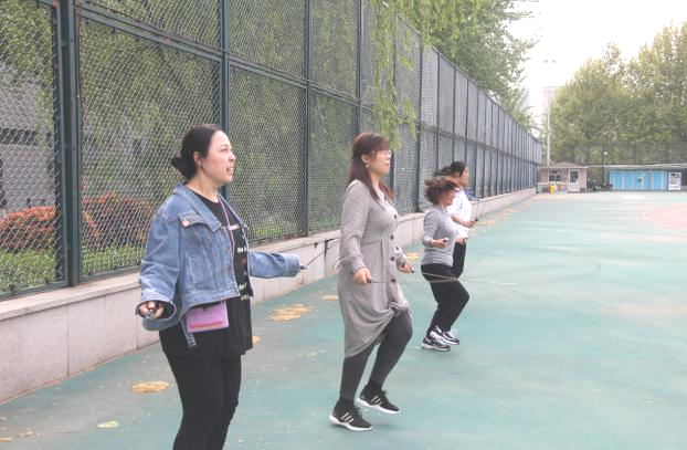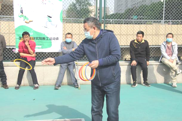 跳绳是相对轻松欢快的环节,女老师们英姿勃发,在项目中表现亮眼。“足球射门”“沙包投准”“套圈”和“飞镖投准”考察精准度和判断力,激烈程度有所降低,难度却丝毫未减。王承略老师一次精准的套圈命中,引得大家纷纷拍手叫好。“摸石头过河”则需要胆大心细,沉着稳定,比拼的是速度,更是心态——一旦从“石头”上掉下便前功尽弃。与第一个集体项目的激烈比拼不同,最后的集体项目“曲回运球”充满默契的配合:圆滚滚的网球在羽毛球拍上晃晃悠悠,球在传递,欢乐也感染了所有人。