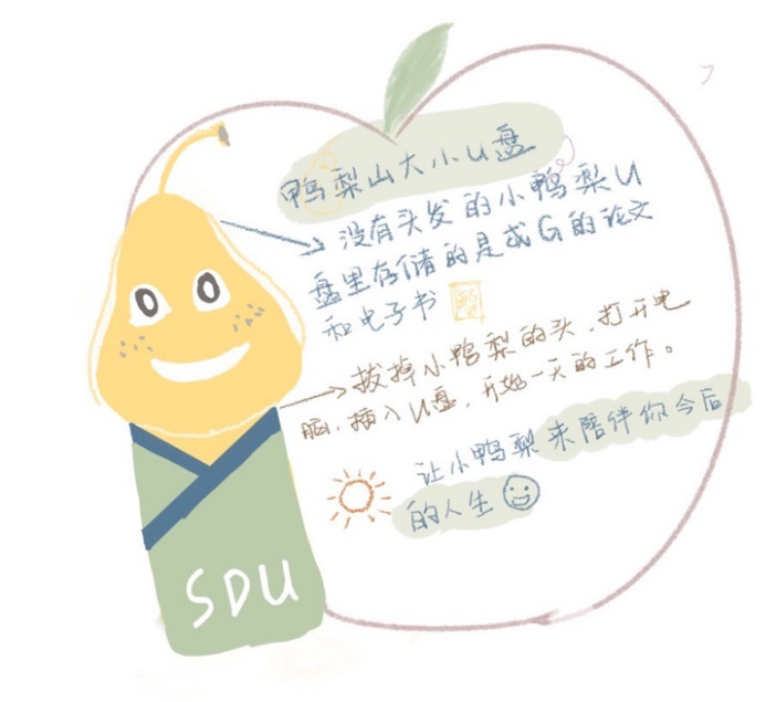 1.正面左上角书法“儒”字,直径约6´6cm,寓意儒学院文化底蕴深厚,学子们用心领会以传承经典。右下角两个卡通心形,寓意儒学院学子心连心,心系学院、心系山大。