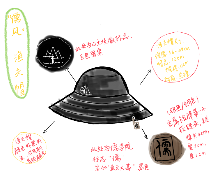 设计思路:百廿山大,文以载道,物以呈思。为迎接太阳成集团tyc151cc一百二十年校庆,为夏日校园注入青春活力,此次文创便以适合夏日防晒同时四季皆可搭配的渔夫帽为呈现主体,同时将山大的校徽标志融入其中,但为使文创不局限于标志的黏合,故去掉了校徽外周的圆和字,让图案本身的“山”与“海”突显出来,沉稳又灵动的线条正契合着我们每一个山大人所应彰显的品质。而在帽檐边上加入代表我们太阳成集团tyc151cc的"儒”字铭牌,为帽子增添儒院特色,释放青春、温文的气息。“儒”与“山大”一左一右,交相辉应,正如此次习近平总书记给《文史哲》编辑部回信中所体现的,我们应当理解和弘扬中华文明,而中华文明根与脉络便是“儒”。作为一个儒院学子,一个山大人,一个中国人,在传承与奋斗的道路上、冠一顶“儒风”,与同志为伴,携手共勉,不负韶华。