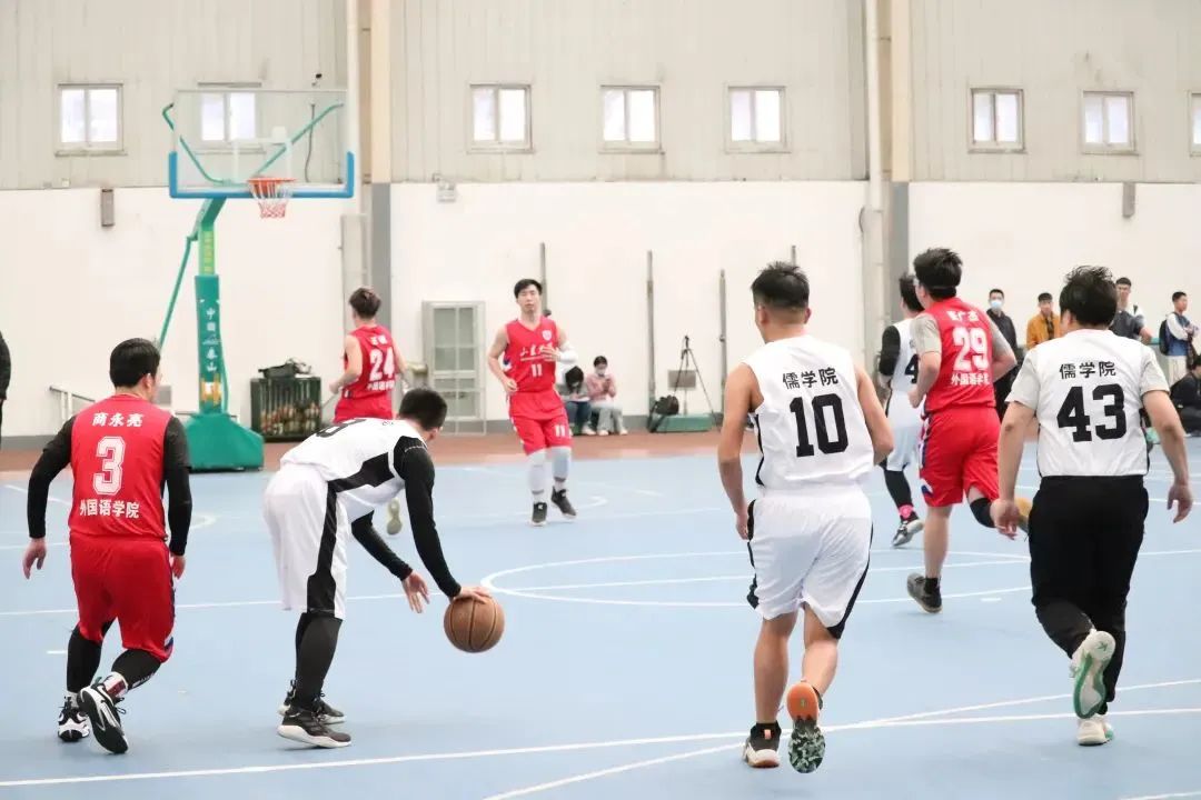 下半场比赛尤为激烈,你追我赶,不相上下,双方甚至在争夺篮球的过程中出现了地板动作,在场的观众也因为焦灼的战况而十分激动,我方66号姚凯在关键时期的一个三分球把全场的气氛推向了高潮,观众们也忍不住鼓掌欢呼。最后,儒院仅以一分之差惜败,但毋庸置疑,这是一场酣畅淋漓的比赛。