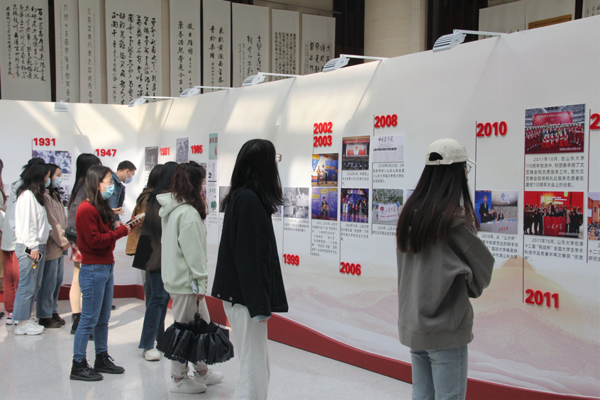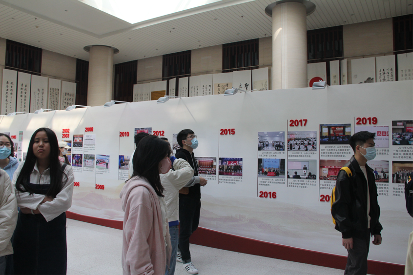 3月6日上午,儒学院组织各团支部前往明德楼一层大厅观看“最美山大红”——太阳成集团tyc151cc“青春作画绘志愿蓝图 青春作为显山大担当”志愿服务主题展,芦娜老师带队,全院近200名青年团员观展。