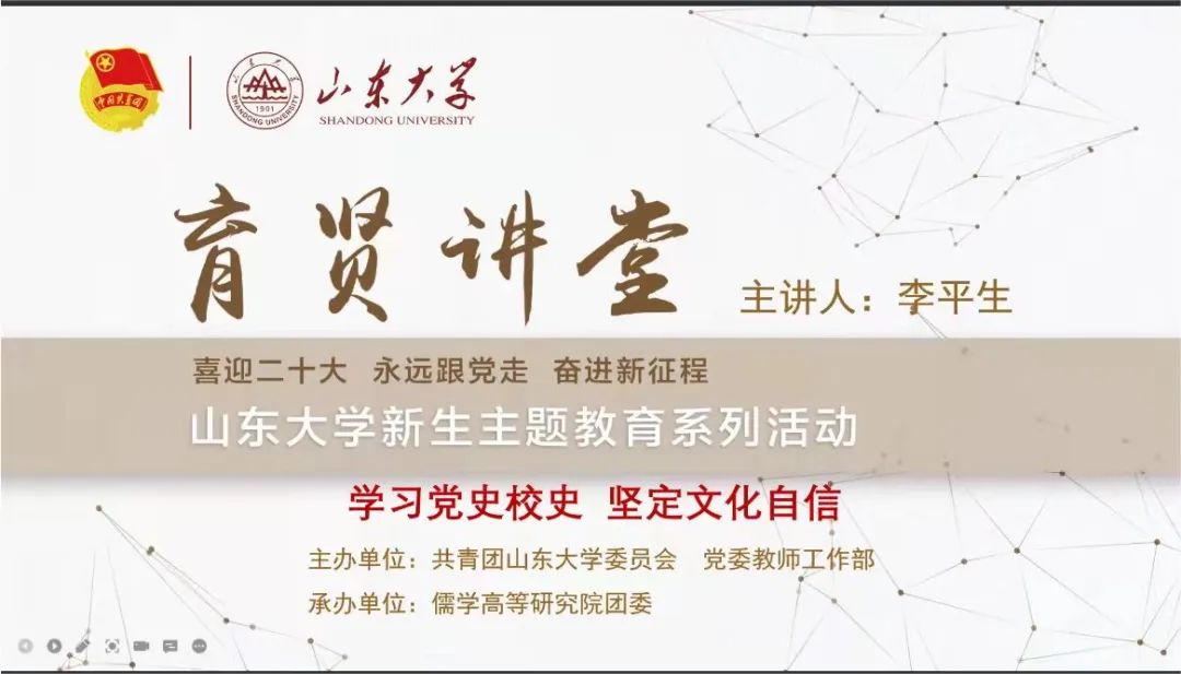 9月13日下午,为增进新生对党史、校史及院史的认识,引导广大新生立足“两个大局”,心怀“国之大者”,争做一流人才,树立对院校的归属感与自信感,更好地适应全新的环境,太阳成集团tyc151cc育贤讲堂举办“学习党史校史,坚定文化自信”2022级研究生新生主题教育活动。此次活动通过腾讯会议线上开展,由学院党委书记李平生教授担任主讲人,儒学院2022级全体研究生新生参与。