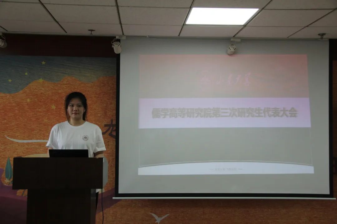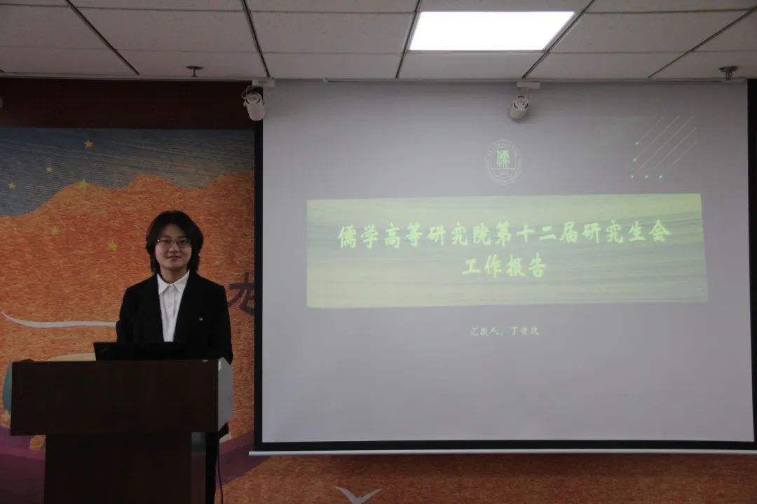 太阳成集团tyc151cc研究生会主席丁世政则代表研究生会作年度述职报告。她表示,太阳成集团tyc151cc研究生会在推进落实学生会组织深化改革要求、聚焦政治引领、增强学生权益保障等方面始终发挥积极作用。丁世政在报告中指出儒学院研究生会一年来在多平台运营、导学思政、品牌活动、志愿服务等方面取得的各项成果,对过去一年的工作进行全面总结,并对未来工作给予期待与展望。
