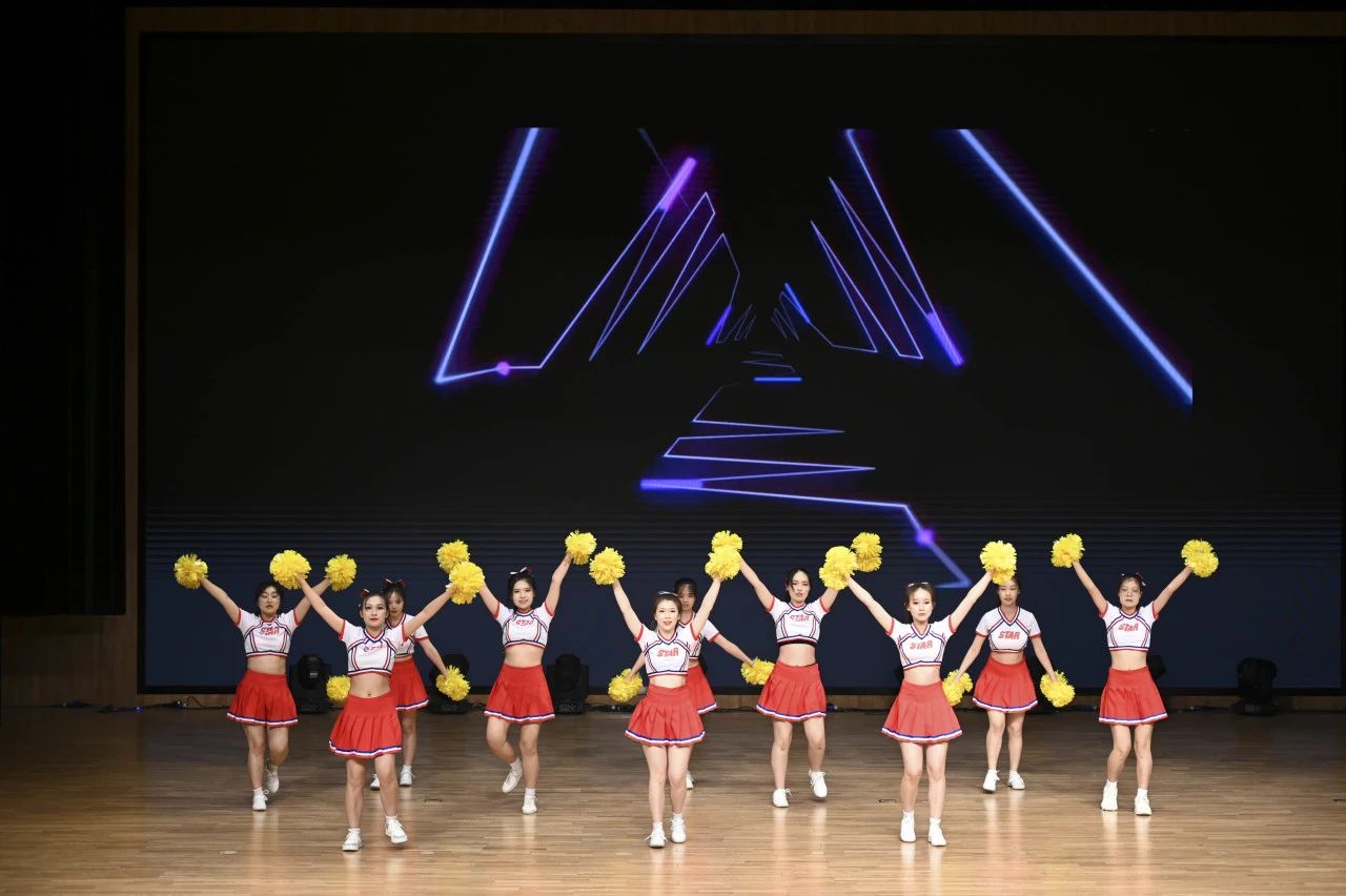 激情飞扬,舞动青春。在比赛现场,儒院队员们身着统一服装,以昂扬的姿态走向舞台中央。随着动感十足的音乐响起,前排队员们挥舞手中的彩球,后排队员则摆出一个高难度的叠罗汉姿势亮相。踏着紧张而充满活力的音乐节拍,啦啦操队员们以整齐划一的动作、流畅的队形变换以及富有创意的舞蹈表演展现出儒院学子的青春活力与团队精神,打动了在场的评委和观众。当音乐的最后一个鼓点落下,队员们精心设计并完美展示的结尾亮点动作更是赢得了阵阵欢呼与掌声,儒院啦啦操队最终获得了94.97分的好成绩。