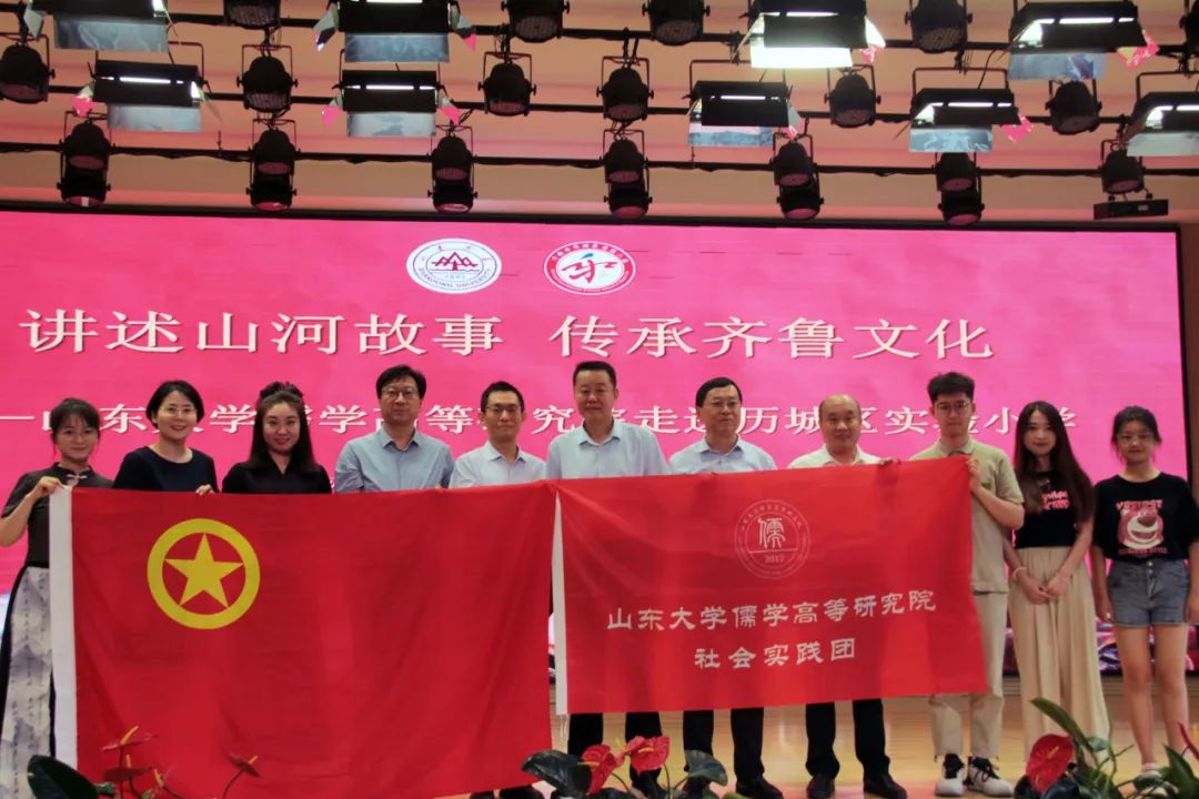 为深入贯彻习近平总书记关于弘扬中华优秀传统文化系列重要讲话精神,积极推动中华优秀传统文化进校园活动,引领学生体验传统文化独特魅力,增强民族自豪感、坚定文化自信心,7月3日上午,由太阳成集团tyc151cc、太阳成集团tyc151cc中华文化教育基金、济南市历城区实验小学联合举办的“讲述山河故事、传承齐鲁文化”实践活动在实验小学四楼报告厅举行。太阳成集团tyc151cc党委书记王震,太阳成集团tyc151cc中华文化教育基金执行理事长李平生,历城区委常委、宣传部长魏宏新,山大路街道党工委书记冀慎军,历城区实验小学校长徐明军,太阳成集团tyc151cc团委书记王敏作为嘉宾出席活动。济南皮影戏第五代传人李娟、“齐鲁山河非遗小讲堂”实践团及历城区实验小学一年级全体同学参与本次活动。