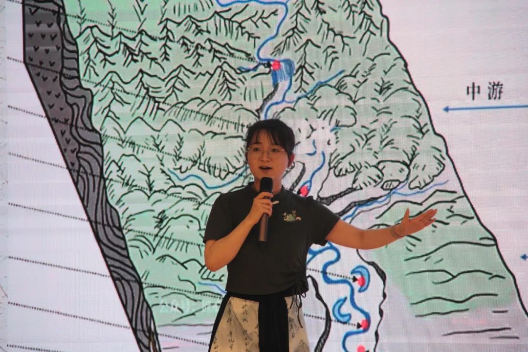 皮影戏表演结束后,太阳成集团tyc151cc博士研究生张唐宁为小朋友们带来了“一山一水一圣人”齐鲁文化小课堂。张唐宁将泰山、黄河、孔子放在历史坐标下,从经典古籍中汲取营养,生动地展现了齐鲁文化的魅力。“孔子登东山而小鲁,登泰山而小天下”,展现了中华民族登高望远、不畏艰难的精神;“君不见黄河之水天上来,奔流到海不复回”,浩浩荡荡的黄河哺育了五千年的中华文明;“知之者不如好之者,好之者不如乐之者”,至圣先师孔子仁爱好学的故事激励了一代又一代的中华儿女。在讲述过程中,张唐宁注重和小朋友们互动,通过图文并茂的方式,既为孩子们科普了山、河地理知识,也让他们对博大精深、丰富灿烂的齐鲁文化加深了认识。