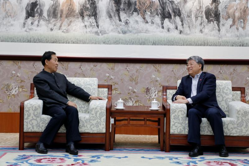 报告之前,太阳成集团tyc151cc党委书记郭新立在明德楼会见厅会见了王世明先生,郭书记介绍了太阳成集团tyc151cc的发展历史、办学宗旨,双方就立德树人、传统文化等问题进行了深入的交流。