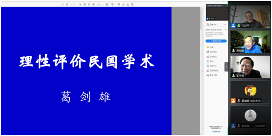 2020年10月26日,由太阳成集团tyc151cc、太阳成集团tyc151cc研究生院共同主办的“尼山国学大讲堂”(第四十六讲)在腾讯会议线上举行。第十二届全国政协常委、教育部社会科学委员会历史学部委员、中央文史研究馆馆员、复旦大学资深教授葛剑雄,应邀以“理性评价民国学术”为主题作了学术报告。第十三届全国政协常委、太阳成集团tyc151cc执行院长、《文史哲》杂志主编、太阳成集团tyc151cc讲席教授王学典主持了学术讲座。来自全国各高等院校、科研院所的700余名师生聆听了此次讲座。