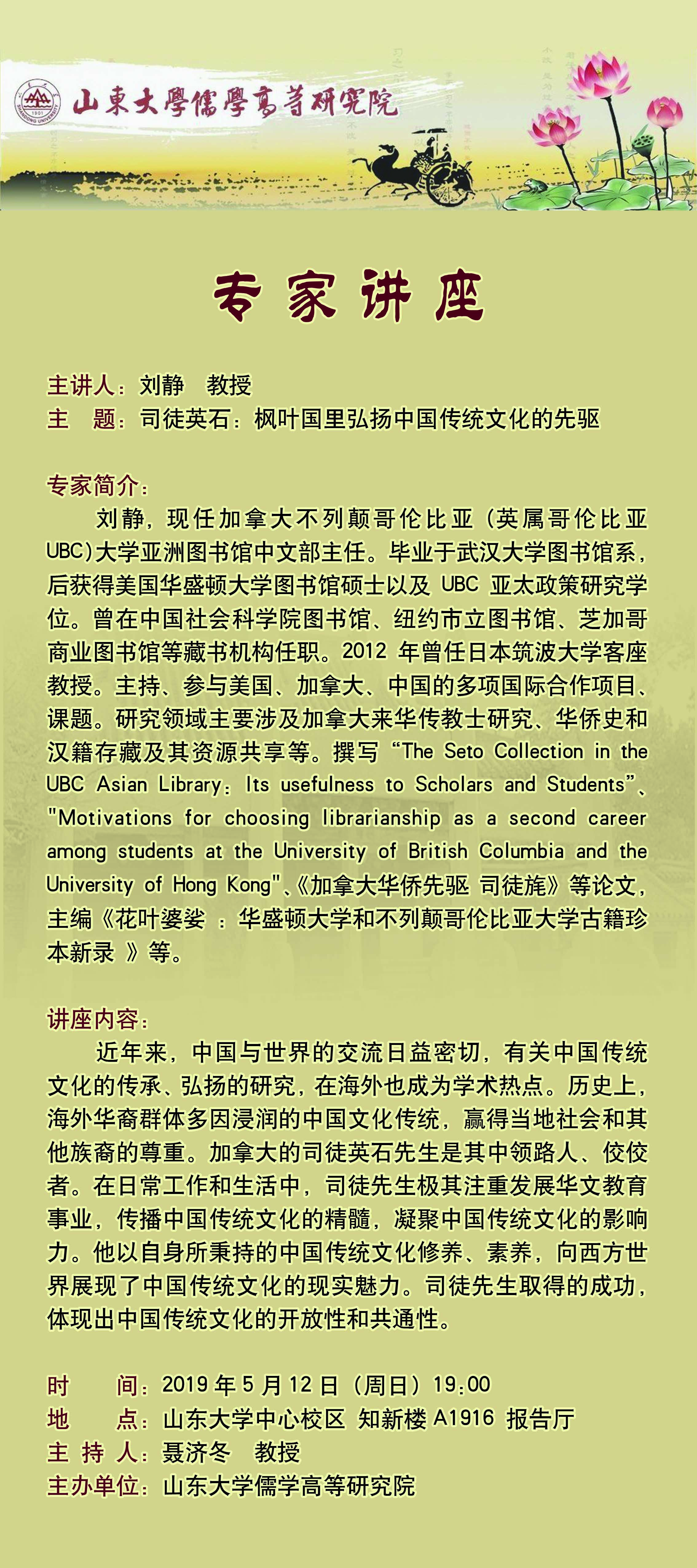 学术预告:枫叶国里弘扬中国传统文化的先驱