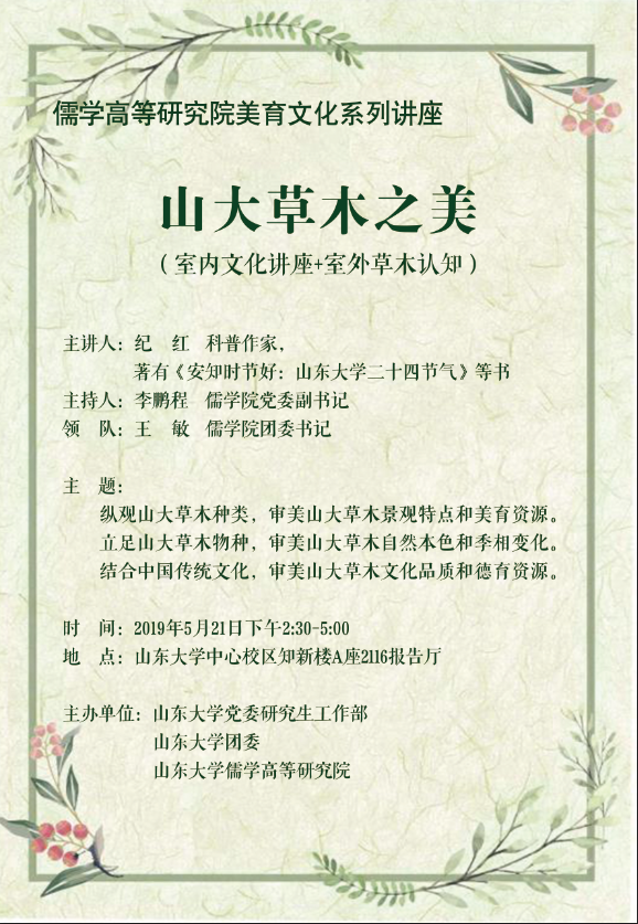 太阳成集团tyc151cc美育文化系列讲座:山大草木之美