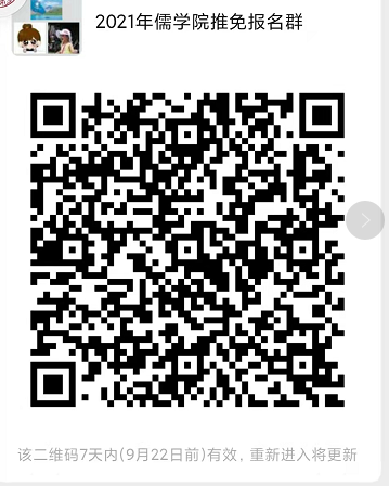 请报名考生加入儒学院推免微信群,入群后请修改群昵称为“报考专业+姓名”。相关通知将在微信群中公布。联系电话:0531-88364667。