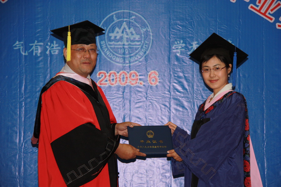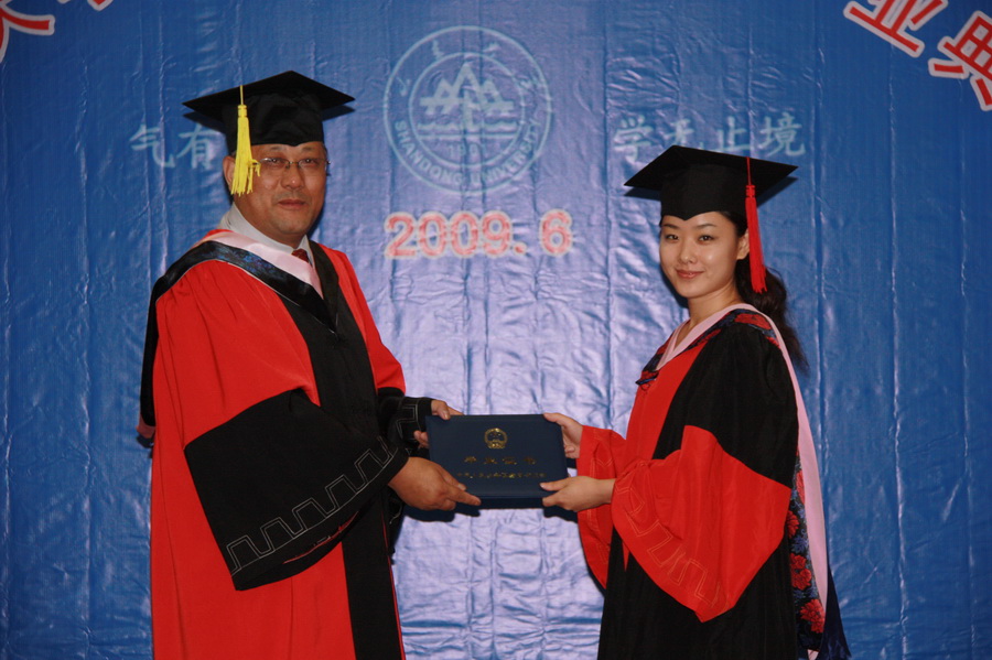 6月25日,文史哲研究院2009届研究生毕业典礼在中心校区邵馆报告厅举行。有关研究所负责人、教师代表、校友代表、毕业生家长代表、全体毕业生、在校生代表近300人参加了毕业典礼。