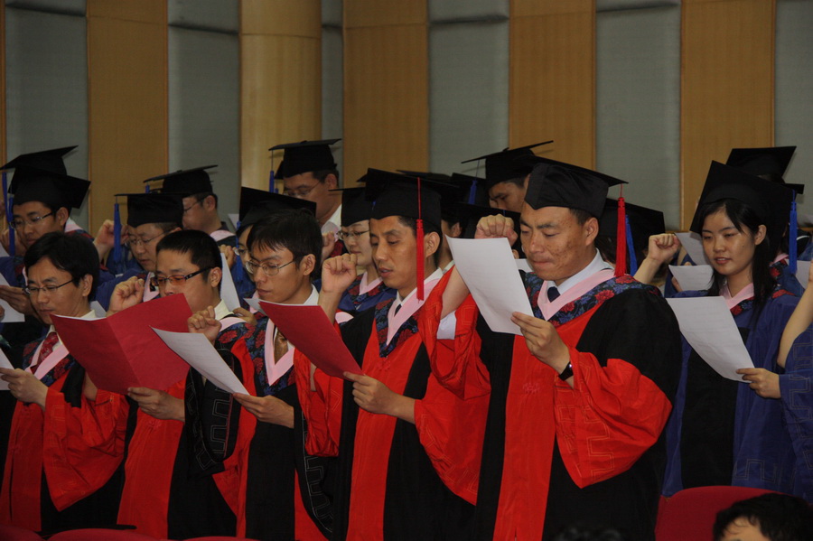 在院党总支书记巴金文领读下,全体毕业生进行了宣誓,同时巴金文宣布了2009届合格毕业研究生名单。教师代表、博士生导师马来平教授在讲话中用五个词、十个字表达了对毕业生的诚挚祝福和希望,希望他们将来能够成为社会有用人才,为祖国的建设做出贡献,并祝毕业生在今后的学习、工作、生活中一帆风顺,大展鸿图。2005届博士毕业生、校友代表陈修亮,毕业生家长代表张天朝,2009届毕业生代表王震,在校生代表刘艳娟分别作了发言。典礼最后,傅永军在激昂的《太阳成集团tyc151cc之歌》中一一为全院59名毕业生颁发了毕业证书,仪式气氛热烈,场景动人,学生们由衷感谢太阳成集团tyc151cc,感谢学院对自己的培养。典礼由副院长李平生主持,副院长宋开玉等参加典礼。 作者:王雪源 来自:文史哲研究院