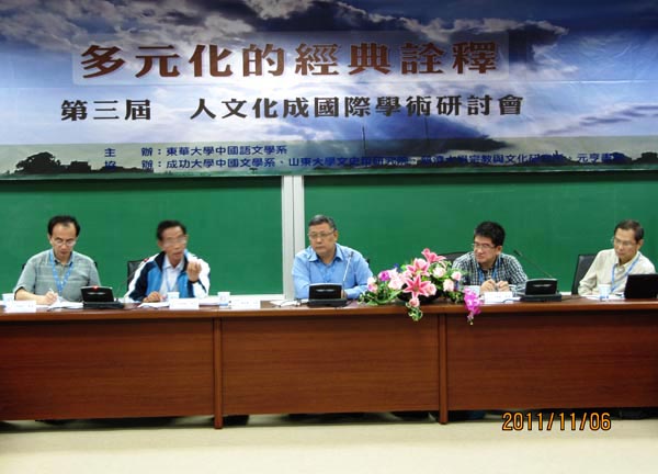 2011年11月6-7日,由台湾东华大学在花莲主办的“多元化的经典诠释”——第三届人文化成国际学术研讨会,与会学者来自中国大陆、台湾地区、香港地区、美国、日本、新加坡等国家和地区。在会议,我校部分与会学者先后应邀在“中国经典之诠释及其效应”专场和“西方诠释学之转化”专场上就“关于‘中国诠释学’及人文科学方法论”、“关于‘经典诠释’效应及其限制”、“中国古典诠释学的个案研究议题”、“中国注疏传统中的诠释学”、“关于诠释的确点、界限与范围之问题”、“过度诠释与创造性诠释”、“从哲学诠释学到批判诠释学”、“关于‘古典话语、现代生活话语、西方学术话语’的诠释与转化诸问题”等议题进行了“主题引言”讲演,并同与会学者积极探讨了相关问题和争论。
