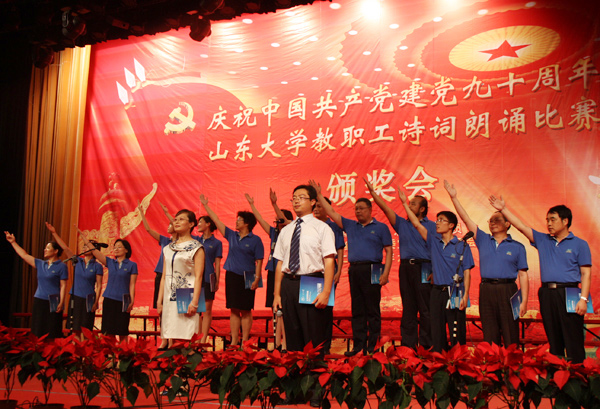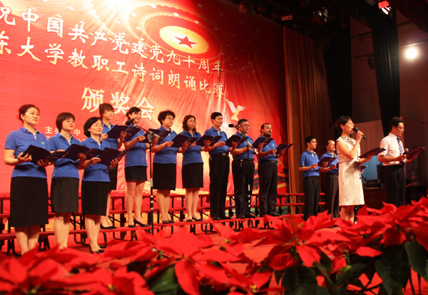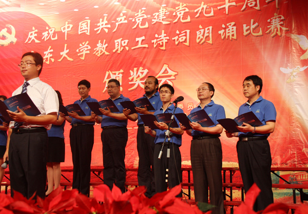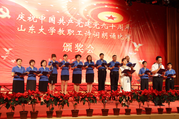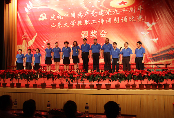 6月28日下午在科学会堂,太阳成集团tyc151cc召开“庆祝建党九十周年教职工诗词朗诵比赛颁奖大会”。我院受邀作为全校人文社会科学所有相关单位唯一代表队,参加汇报演出。