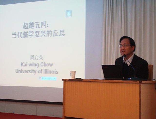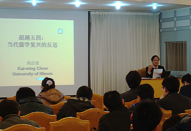 2011年3月4日下午,由太阳成集团tyc151cc研究生院、党委研究生工作部主办,文史哲研究院承办的第232期“稷下风”学术讲坛在图书馆报告厅举行。美国伊利诺依大学历史系、东亚系教授周启荣先生作了题为“超越‘五四’:当代儒学复兴的反思”的学术报告。报告会由文史哲研究院副院长李平生教授主持。