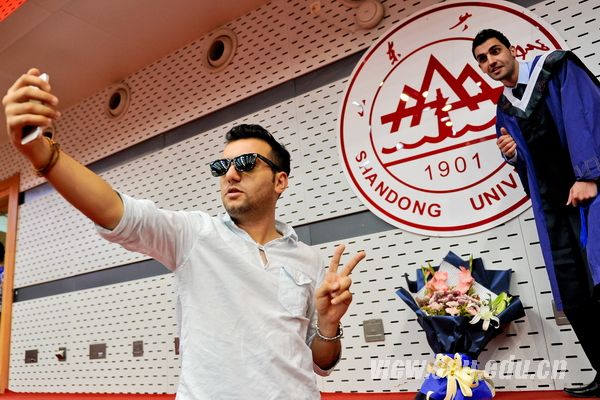 各种奇异的拍照姿势,为庄严的时刻平添欢乐