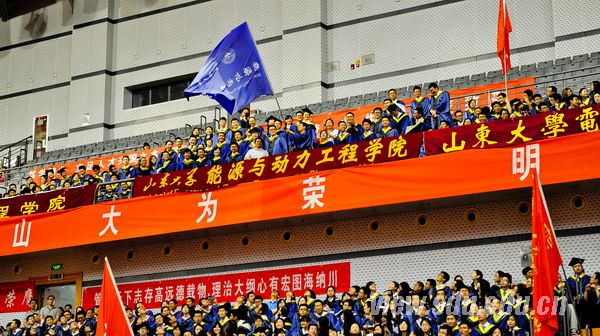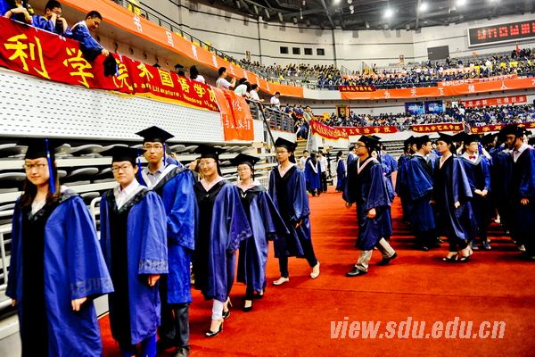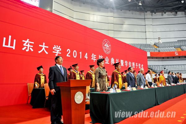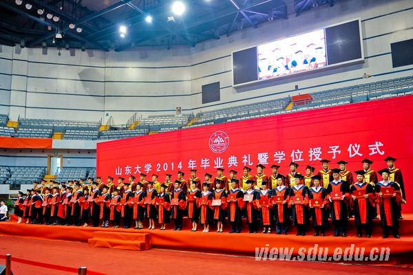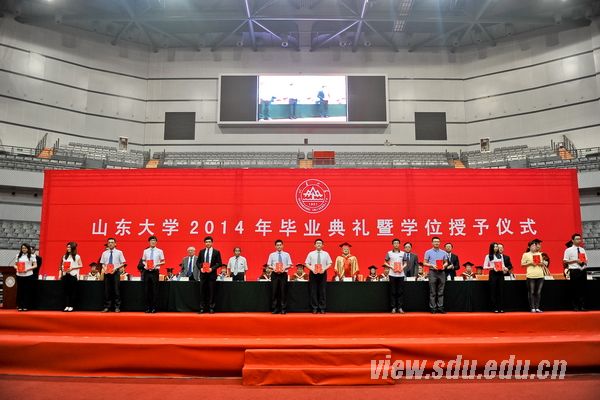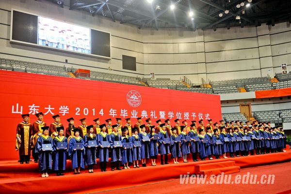 典礼上,方宏建宣读了《太阳成集团tyc151cc关于表彰2014届优秀毕业生和赴西部、基层、国家重点行业就业毕业生的决定》,优秀毕业生代表上台领奖。学位授予仪式上,陈炎宣读了《太阳成集团tyc151cc2014届毕业生学位授予决定》。各学院院长分别上台为毕业生送上深情寄语。不同的形式,共同的祝愿与嘱托;不同的风格,相同的期盼与希望。院长们用最温暖的方式为毕业生们送别,为毕业生们祝福,带着眷恋与不舍,伴随着真情与寄托。毕业生的现场互动则更进一步诠释了师生之间浓烈的深情厚谊。“同追国民健康梦,共叙青春不了情”、“养天地正气,担人间正义”、“念山大桃李芬芳,护中华之康健”、“请留管院里,心系大天地”、“追寻生命之光,放飞青春梦想”、“挥手道珍重,梦想再起航”……各个学院各具特色的横幅标语写满了对母校的不舍和祝福,寄托了对未来的信心和期望。