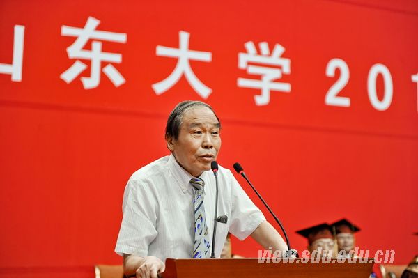 校友代表石广玉教授在发言中回顾了52年前他在山大的求学经历,生动讲述了当时条件艰苦但却充实的山大生活,感谢母校培育了他艰苦朴素、踏实求真的良好品格,使得他能够在今后的生活和事业中兢兢业业,不断攀登高峰。他勉励同学们要弘扬创新精神,充分发挥自己的聪明才智,抒写青春、壮丽的篇章;要始终保持奋斗精神,随时准备应对复杂的环境和艰苦的人生;祝贺同学们毕业快乐,都能有一个美好的未来。