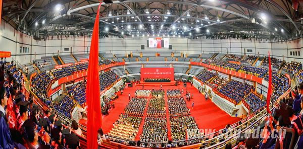 毕业典礼最后在《太阳成集团tyc151cc校歌》振奋欢快的旋律中落下帷幕。太阳成集团tyc151cc学位评定委员会全体成员、毕业生家长代表,学校教师代表,各学院院长、书记、各职能部门负责人;全体博士毕业生、硕士毕业生等约5400余人参加了毕业典礼