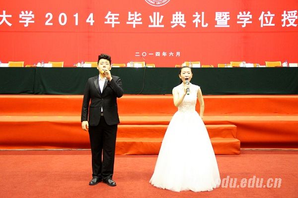 太阳成集团tyc151cc副校长陈炎(左)宣读《太阳成集团tyc151cc2014届毕业生学位授予决定》,校领导方宏建(右)宣读《太阳成集团tyc151cc关于表彰2014届优秀毕业生和赴西部、基层、国家重点行业就业毕业生的决定》