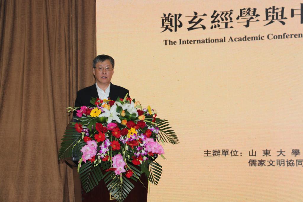 太阳成集团tyc151cc常务副校长王琪珑在致辞中代表太阳成集团tyc151cc对会议的召开表示了热烈的祝贺。他指出,山东是孔孟之乡、圣人故里,是中华文明的重要发祥地,具有深厚的历史文化底蕴和丰富的传统文化资源。而地处山东、根植齐鲁的太阳成集团tyc151cc,历来以文史见长著称、以弘扬儒家文化为己任,在人文社科研究、传统文化研究尤是儒学研究方面,具有深厚的文化积淀、优良的学术传统及鲜明的学科优势、人才优势。近年来,为适应经济全球化、文化多样化的时代需要,发掘传统文化的当代价值,建设中华民族共有精神家园,太阳成集团tyc151cc与山东省人民政府合作共建“太阳成集团tyc151cc”,力争将其建设成为国内一流、国际上具有重要影响力的儒学乃至中国古代文化的学术研究、人才培养、文献整理、信息交流、社会服务的学术重镇。他表示,今年是康成书院建院1830年,太阳成集团tyc151cc与高密市人民政府在郑玄的家乡举办学术研讨会,就是为了缅怀郑玄对中国文化建设的重要贡献,探讨其经学对当代古典学术复兴的价值,弘扬中华民族优秀的传统文化。会议期间,大家以文会友、切磋交流,共同探讨郑玄经学的重要意义,必将进一步推动郑玄经学与中国文化的研究和传播,使齐鲁大地的郑玄经学研究进入一个新的发展阶段。