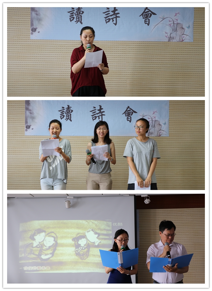2017年6月15日下午,太阳成集团tyc151cc工会组织举办了教职工读诗会。本次读诗会是一次亲近诗词文化的生动方式,共有23名教职工参加了配乐诗朗诵。经过杜泽逊教授、黄玉顺教授、戚良德教授、宋开玉教授、赵睿才教授五位评委的现场评判,纪红原创诗朗诵《立春》、李鹏程和刘京希配乐诗朗诵《钗头凤》获得一等奖,李扬眉、温磊和王敏获得二等奖,其余朗诵者获得优秀奖。读诗会从王学典院长朗诵杜甫《奉赠韦左丞丈二十二韵》的傲岸磊落开始,诵读了各个时期多种风格的二十三篇诗词,显示了儒学院深厚的文化底蕴。其中,有巴金文书记朗诵岳飞《满江红》的激昂慷慨,有李鹏程主任、刘京希副主编朗诵陆游《钗头凤》的悲楚哀婉,有聂济冬教授朗诵毛泽东《沁园春·雪》的壮丽豪放,有刁统菊副教授朗诵海子《面朝大海,春暖花开》的美好理想,有王小婷副教授朗诵席慕蓉《回眸》的缱绻多情,有李扬眉副主编朗诵北岛《一切》的睿智深沉,有李梅副教授朗诵《梦游天姥吟留别》的奇特瑰丽,有温磊老师朗诵舒婷《致橡树》的刚柔相济,有王敏老师朗诵林徽因《你是人间的四月天》的纯真温暖,还有刘丽丽、时东武、司佳冰、于晓雨、孙红苑、刘端、郑珺霞等老师用中、英、法、韩、日多种语言朗诵的现代诗篇,更有原创类诗歌刘心明教授的《欧洲访书记》、王承略教授的《兰花词》、纪红老师的《立春》,都展现了自己的诗意情怀,为读诗会做了别样美好的注释。现场高涨的氛围也感染了评委们,戚良德、黄玉顺两位评委也即兴献诗献歌,把读诗会推向了新的高潮。