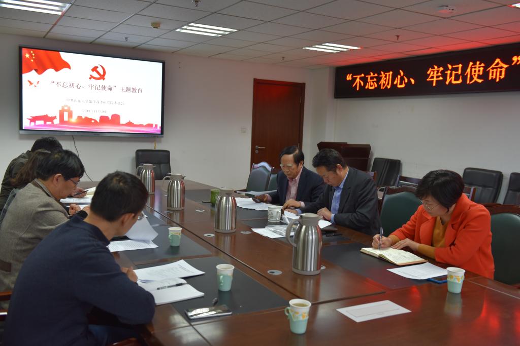 会上,李平生总结了研究院主题教育开展情况,传达了中央和学校党委关于“不忘初心、牢记使命”主题教育整改落实的要求。李平生指出,主题教育启动以来,研究院聚焦学习贯彻习近平新时代中国特色社会主义思想这条主线,用“四个意识”导航,用“四个自信”强基,用“两个维护”铸魂,着力推动主题教育与中心工作紧密结合,通过学习研讨、调查研究,将学习习近平新时代中国特色社会主义思想与党的建设、新文科建设、人才培养、科学研究、国际化战略、儒家文明省部共建协同创新中心、内部管理等工作紧密结合。检视问题、整改落实盯住难题出实招,向师生最急最忧最盼的问题“开刀”,逐项整改落实。下一步要按照学校党委的部署要求,进一步提高政治站位,坚持问题导向,边学边改、边查边改、立行立改,要勇于自我革命,着力提升整改落实的质量和效果。