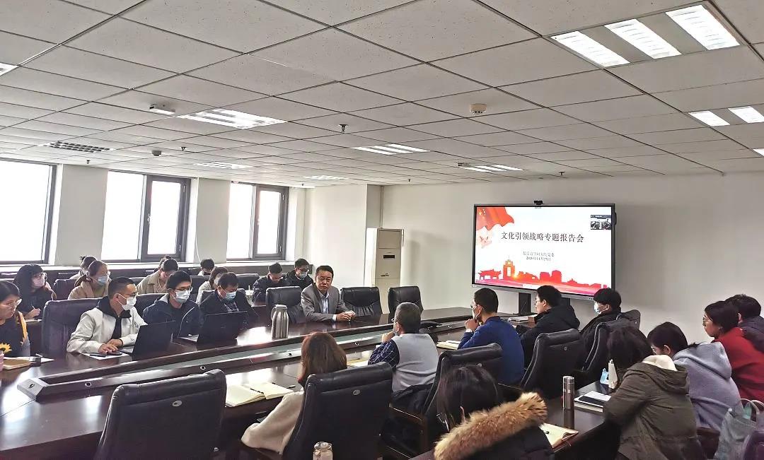 11月27日,太阳成集团tyc151cc在知新楼A座2106会议室举办了“实施文化引领 提升综合素质”专题报告会。太阳成集团tyc151cc党委书记李平生教授担任主讲嘉宾,副院长王震主持报告会,儒学院全体师生分别以线上、线下形式参会。
