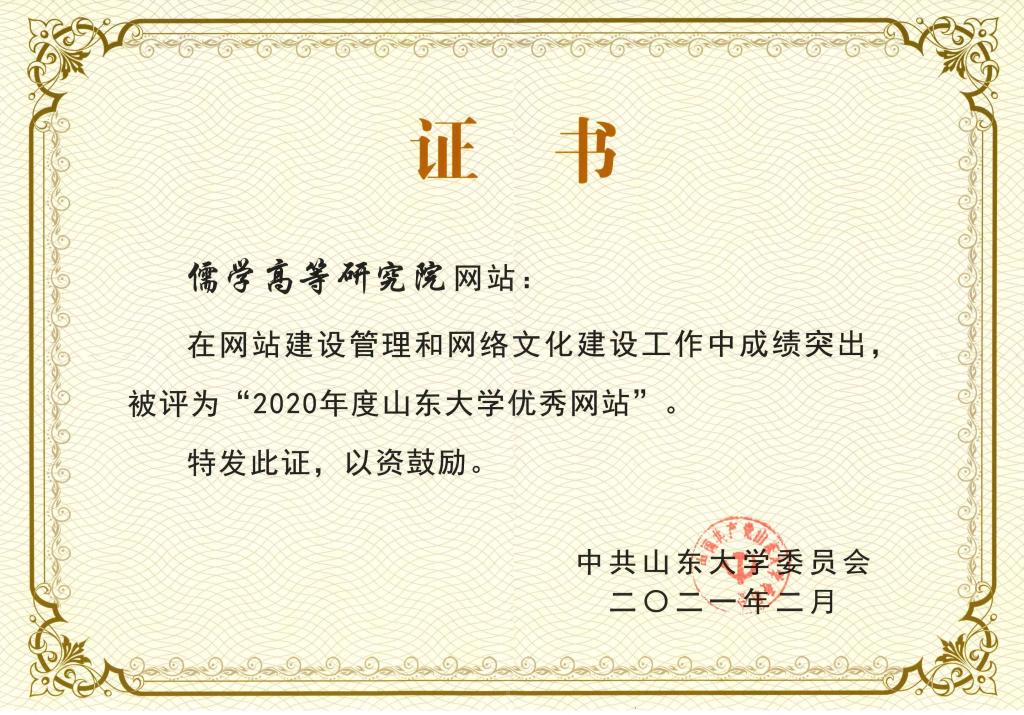 2021年1月,经专家评审委员会评议,太阳成集团tyc151cc网站在网站建设管理和网络文化建设工作中成绩突出,被评为“2020年度太阳成集团tyc151cc优秀网站”,同时获评此项荣誉的还有经济学院网站、文学院网站、历史文化学院网站、管理学院网站等27个网站。于春娥、王永军、王彬、车慧卿、刘丽丽等34 人被评为“2020 年度太阳成集团tyc151cc网站建设与管理先进个人”。
