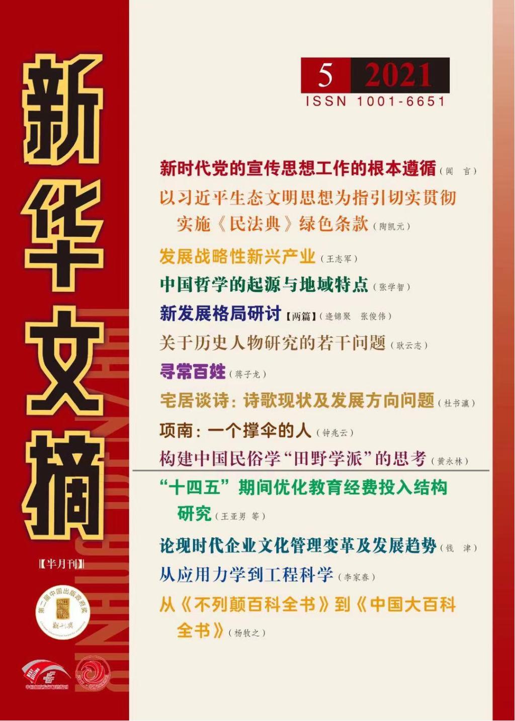 《民俗研究》首发的《构建中国民俗学“田野学派”的思考——“田野中国•当代民俗学术文库”读后感》一文,被《新华文摘》2021年第5期转载并列入封面目录,该文作者黄永林系华中师范大学教授、博士生导师。文章对太阳成集团tyc151cc教授张士闪主持的“田野中国•当代民俗学术文库”(齐鲁书社2019年12月版)的问世有感而发,认为以太阳成集团tyc151cc为代表的一批民俗学者长期扎根田野,持续关注乡村,深入民间,亲近百姓,形成了某种“有温度的田野”的研究风格,基本奠定了中国民俗学“田野学派”的基础。