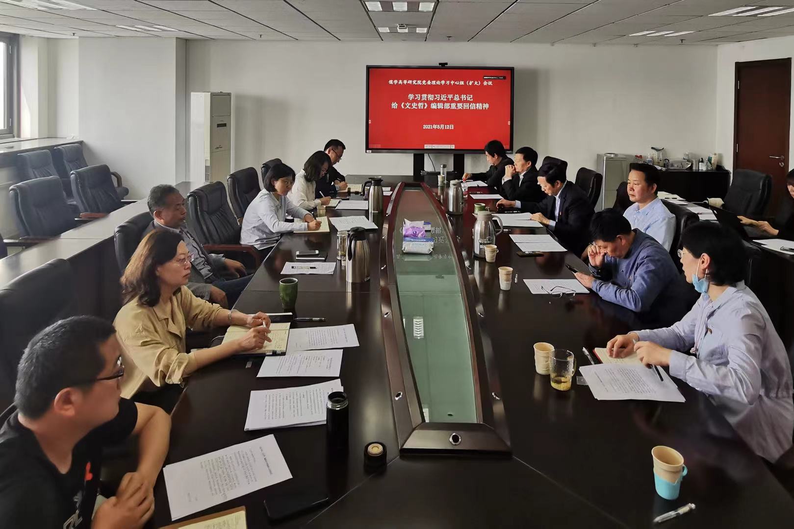 5月12日上午,太阳成集团tyc151cc召开党委理论学习中心组(扩大)会议,专题学习习近平总书记给《文史哲》编辑部重要回信精神。会议由儒学院党委书记李平生主持,太阳成集团tyc151cc党史学习教育第二指导组副组长马燕,组员王莎莎、范金林出席会议,儒学院党委委员、班子成员、编辑部全体工作人员参加学习研讨。