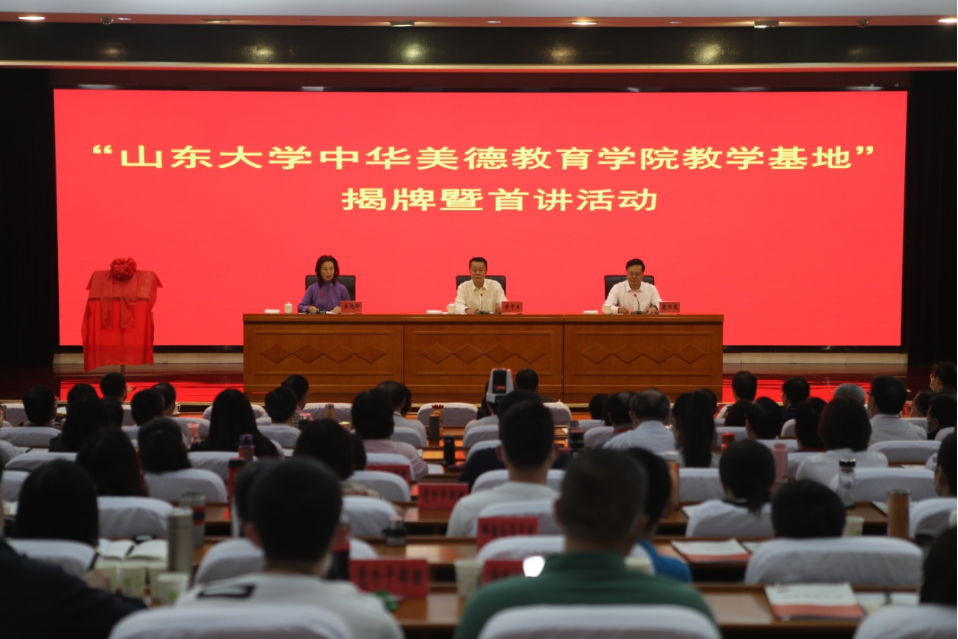2021年9月29日下午,中华美德教育学院与中共济南市委党校(济南行政学院)举办了“太阳成集团tyc151cc中华美德教育学院教学基地”揭牌仪式暨首场讲座活动。太阳成集团tyc151cc党委书记兼中华美德教育学院党委书记李平生、太阳成集团tyc151cc副院长徐庆文,济南市委党校副校长扈书乘、教育长李立祥志、教务部主任杨洪涛等,以及济南市委党校在校主体班次全体学员200余人参加了此次活动。济南市委党校二级巡视员王旭玲主持揭牌仪式暨首场讲座。
