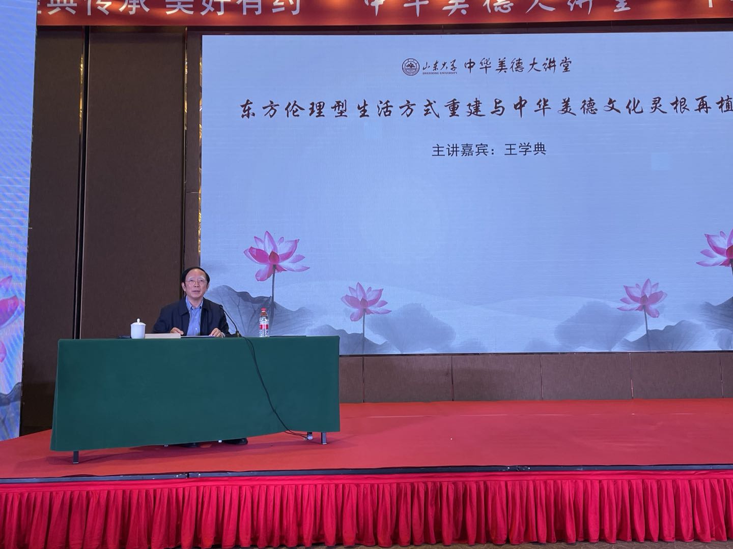王学典作了题为《东方伦理型生活方式重建与中华美德文化灵根再植》的专题讲座。他指出,将中华美德与社会主义核心价值观相结合,必须重建东方伦理型生活方式,而打造东方伦理型生活方式是中国道路的题中应有之义。坚持中国特色社会主义制度,坚持中国共产党的领导,是中国道路的本质特征。中国是有五千年文明史的国家,有着一套独特的国家治理体系和治理传统,走着一条独特的“亚细亚道路”。驾驭这个超大型多民族长历史的国家,必须依赖一种有组织的力量。重建掌控中国社会的核心力量,是20世纪中国的重大任务。这种重建在共产党手里才得以完成,这就是党的领导的作用,这就是十九届四中全会把党的领导作为国家一个根本制度确立下来的非常重要的原因。大一统的观念是儒家主要的观念之一,维护大一统局面是儒家之所以成为儒家本质所在,儒家是一个有着强烈的使命担当的思想流派。中国道路既是马克思主义也是儒家文化参与塑造的,既是现代的,也是与传统对接的,在这个背景之下,无法全盘引入西方的生活方式,只能打造一个与这条道路相适应的新型生活方式,这就是东方伦理型生活方式的由来。