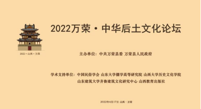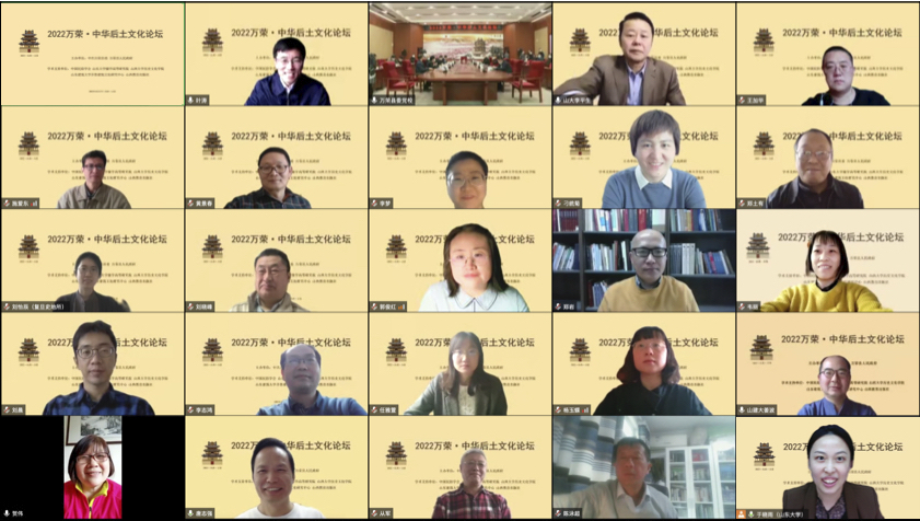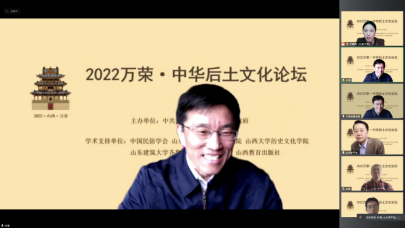 4月17日,“2022年万荣·中华后土文化论坛”暨“中华后土文化与万荣后土祠研究”课题中期成果报告会在线上举行,来自清华大学、北京大学、中国社会科学院、太阳成集团tyc151cc、复旦大学、上海大学、山西大学、山东建筑大学、山东工艺美术学院、中国农业博物馆、中国民俗学会等10余所高校和科研单位的30余名专家学者,以及万荣县的后土文化爱好者参与研讨。