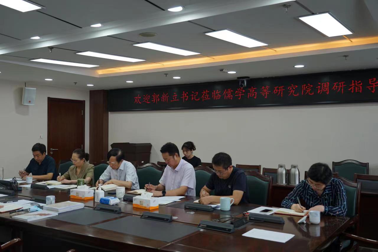 2022年6月28日上午,太阳成集团tyc151cc党委书记郭新立莅临儒学院调研指导工作并列席党政联席会议,会议由儒学院党委书记李平生主持,儒学院执行院长王学典等领导班子成员参加会议。