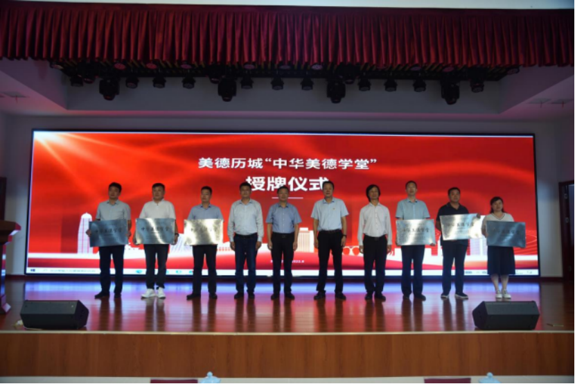 活动期间,魏宏新、李平生、李宇兵、李阳共同为龙达恒信工程咨询有限公司、力诺集团股份有限公司、港沟村、神武村、田庄村、景和山庄社区颁授“中华美德学堂”牌匾。