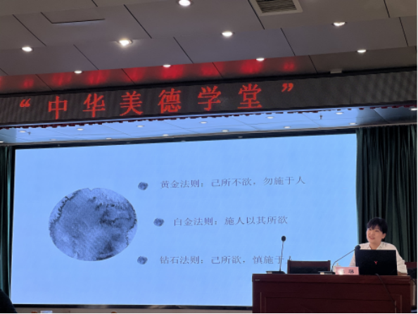李琳以《儒家智慧与人际关系构建》为主题,从儒学的起源、“仁者爱人”的心理基础、“忠恕之道”的交往原则、“和而不同”的交往理念、“修身为本”的涵养积累五个方面为大家作了一场精彩的讲座。李琳表示,孔子是“职业的儒,思想的家”,以仁释礼,将仁爱思想刻进中国人的骨子里,积淀成我们中华民族的内在心理结构,成为人伦日用而不知的一种大用。有了这种家族伦理的理论建构,中国文化的要义便不在形而上的宗教,也不在形而下的法律,而在形而中的伦理。在快速发展的今天,我们面临着人格修养弱化、前行方向迷失、内心根基淡化等人际交往危机,更需要用儒家智慧治心,在人际交往中保持“主敬”“致诚”“谨言”的交往原则,用一颗敬畏之心,规言行,更加诚信诚恳的生活。总之,在当今人际关系构建方面,我们应该从儒家智慧、中华美德中去汲取营养,推动中华优秀传统文化在新的时代条件下实现创造性转化、创新性发展。