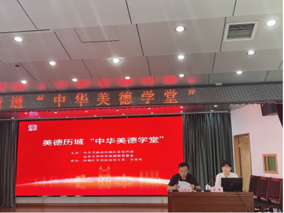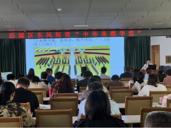 为深入探索中华美德与“现代学校教育、社区文化建设、政府德政建设”相结合的特色文化发展之路,持续推进中华优秀传统文化和中华美德的传承创新,加强新时代公民道德建设,深化校地融合发展,助力美德历城文化强区建设,2022年8月26日上午,由济南历城区委宣传部与太阳成集团tyc151cc中华美德教育基金合作共建的“中华美德学堂”走进历城区东风街道,以《儒家智慧与人际关系构建》为主题进行宣讲。太阳成集团tyc151cc党委书记兼中华美德教育学院党委书记李平生,历城区委宣传部副处级干部马本法,历城区东风街道领导干部、工作人员以及企业、居民代表共计五十多人在现场参加活动。