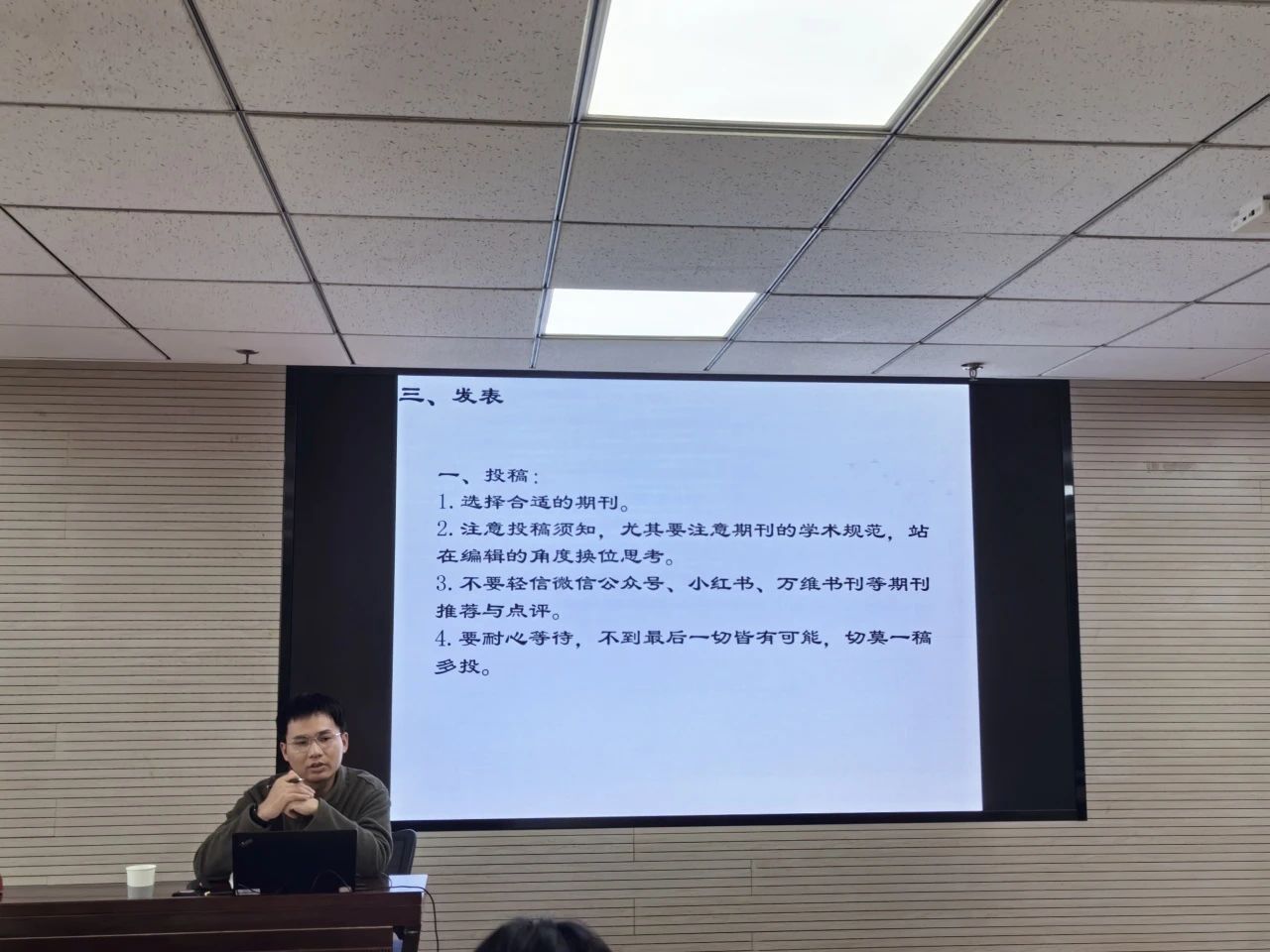 随后,陈嘉礼老师结合主讲人的报告对本次论坛进行点评和拓展,不仅充分肯定了唐勇在学术研究中的创新性与实践性,还结合以往的研究经验提出了很多建设性的建议。陈嘉礼老师还与同学们分享了有关学术论文选题与撰写的方法,提出了发表学术论文时应该注意的几个重要问题,鼓励同学们积极尝试论文投稿,并建议同学们积极参加学术会议,在实践中充分锻炼自己的学术能力。
