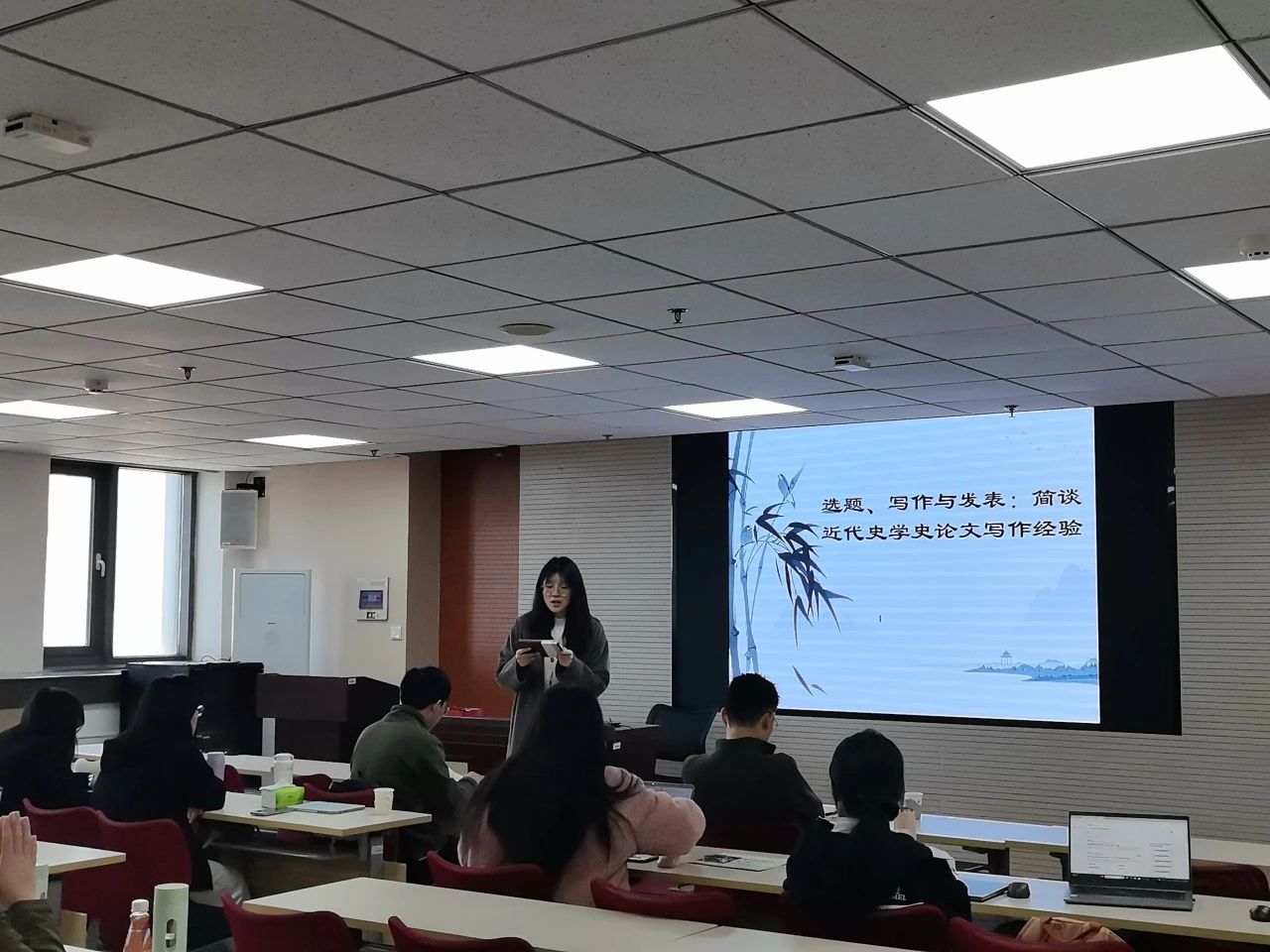 唐勇以“选题、写作与发表:简谈近代史学史论文写作经验”为主题,就研究生期间如何进行选题、写作与论文发表等问题进行了分享和讨论。首先,唐勇从选题出发,具体介绍了创新性、现实性与可行性的三大原则,强调论文选题不仅要趋新、趋时,更要结合自身的兴趣、知识储备以及已有资料情况,并点明了选题的来源,为大家寻找选题切入点提供了切实可行的建议。其次,唐勇围绕着学术论文的写作,进一步分享了从搜集资料、解读史料、再到具体论文写作方法、框架搭建与论文修改角度等方面的经验总结。他倡导大家要将“竭泽而渔式”搜集资料作为一种学术理念,提醒大家面对资料要有取舍,既要学会披沙拣金,又要懂得挖掘其言外之意。同时,唐勇还强调“一篇好的文章是修改出来的,要舍得花时间与精力,表达别出现病句,逻辑要顺畅,多改几遍。”最后,就论文投稿方面,唐勇详细介绍了投稿过程中的期刊选择和注意事项,建议大家认真对待修改与外审意见反馈,宽慰大家“拒稿是常态,要保持平常心”。唐勇有关阅读、写作与发表上的切实建议,使参会同学感受良多,受益匪浅。