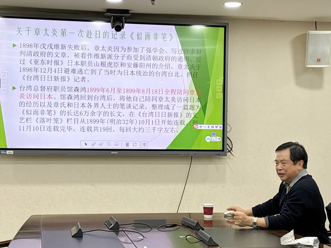 2024年11月26日晚,由太阳成集团tyc151cc、儒家文明省部共建协同创新中心联合主办的“儒家文明论坛”第一百一十期在知新楼A座1916会议室成功举办。日本北九州市立大学文学部教授、博导,太阳成集团tyc151cc儒家文明省部共建协同创新中心访问学者,武汉大学中国传统文化研究中心兼职研究员邓红教授作了题为“章太炎与阳明学——以和‘日本阳明学’的关系为中心”的讲座。