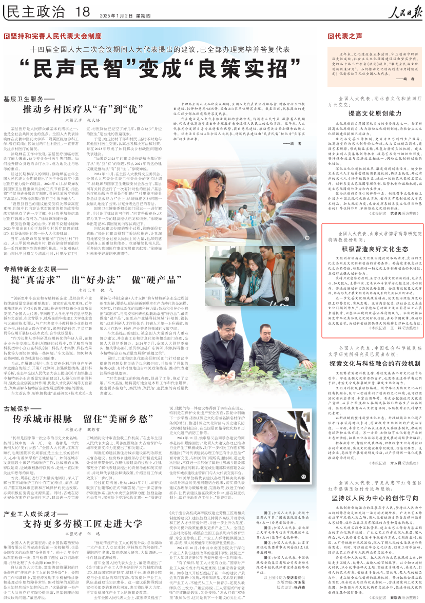 近年来,文化建设在正本清源、守正创新中取得历史性成就,社会主义文化强国建设迈出坚实步伐。党的二十届三中全会《决定》提出,“激发全民族文化创新创造活力”。如何推动文化创新创造活力持续迸发?记者采访了几位全国人大代表。