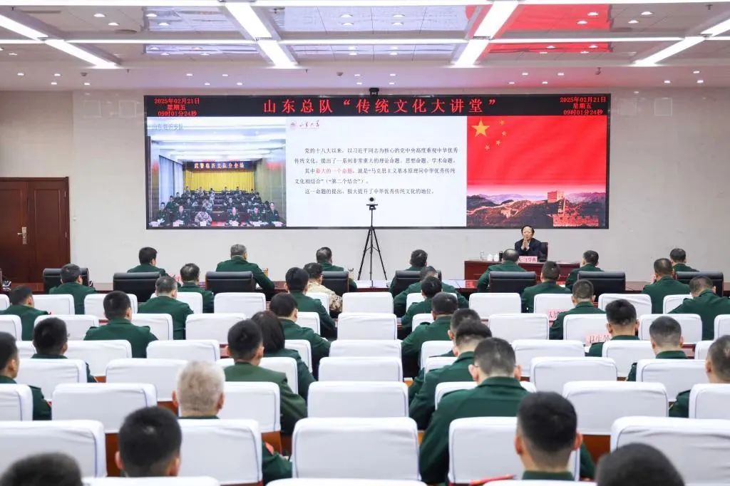 据悉,武警山东总队主办的“传统文化大讲堂”,是以学习贯彻习近平文化思想为主题的系列讲座,本次报告为该系列讲座开班仪式的首场报告,山东武警系统线上线下超过15000名官兵同步学习。