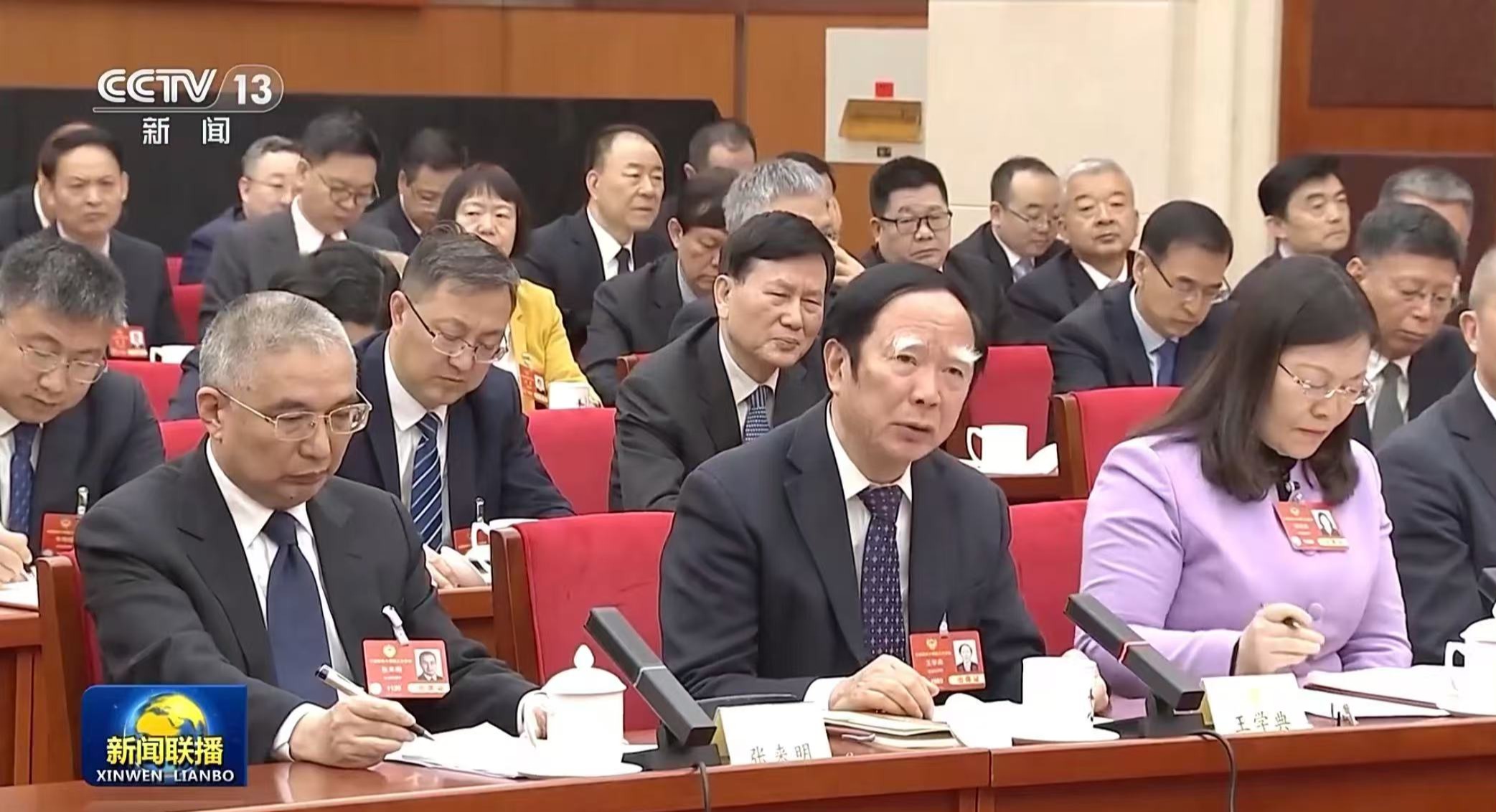 3月6日上午,中共中央政治局常委、中央书记处书记蔡奇参加全国政协十四届三次会议社会科学、新闻出版界委员联组会。(新华社记者 申宏 摄)